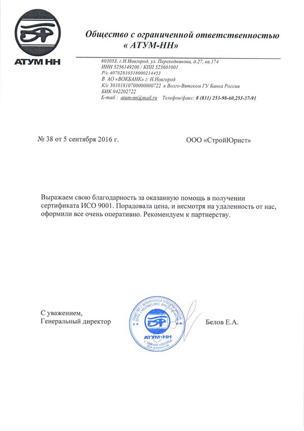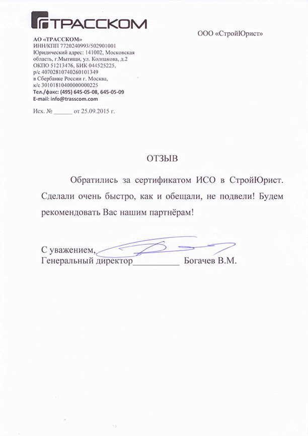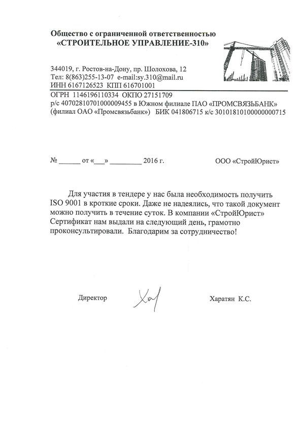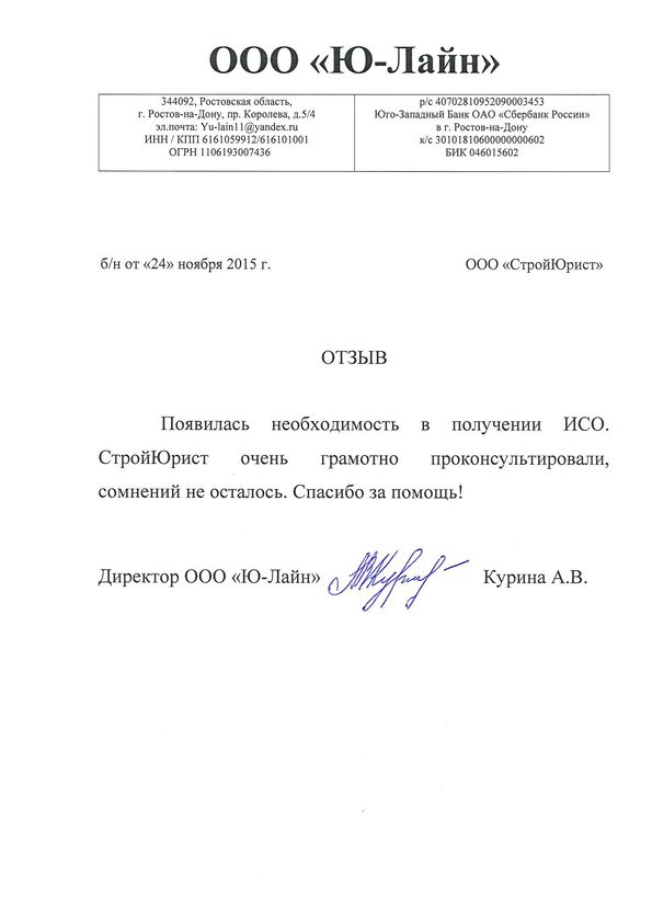 Отзывы клиентов "СтройЮрист" по ISO в Чебоксарах