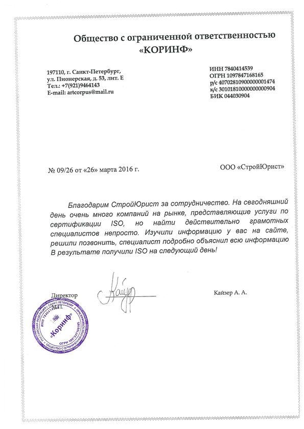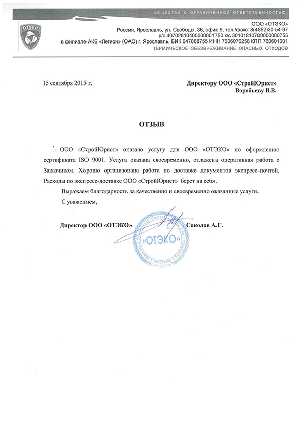 Отзывы клиентов "СтройЮрист" по ISO в Чебоксарах