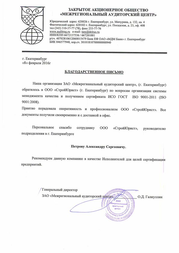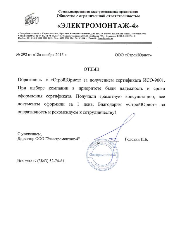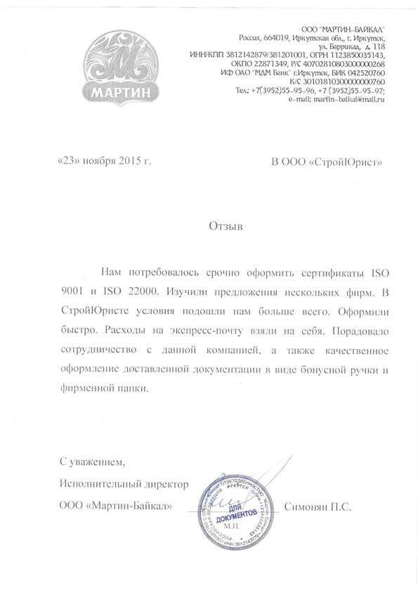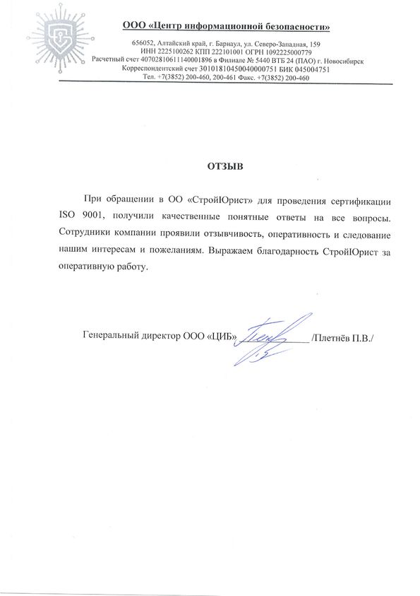 Отзывы клиентов "СтройЮрист" по ISO в Чебоксарах