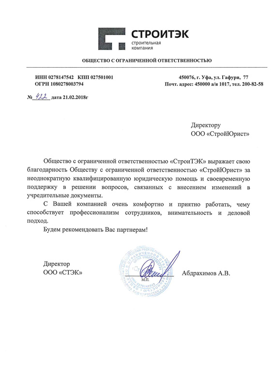 Отзывы клиентов "СтройЮрист" по регистрации фирм в Чебоксарах